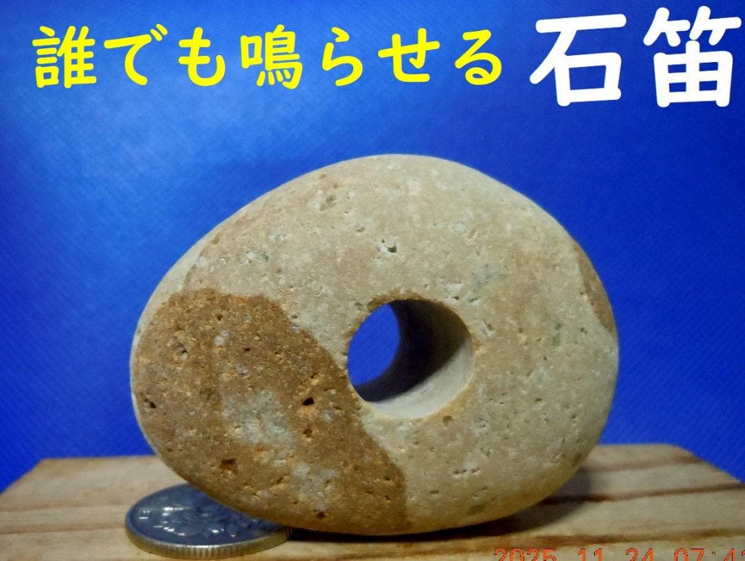 【薬石苑】誰でも鳴らせる宮崎ヒスイ海岸の石笛・岩笛・姫川薬石・表裏貫通孔 81g
