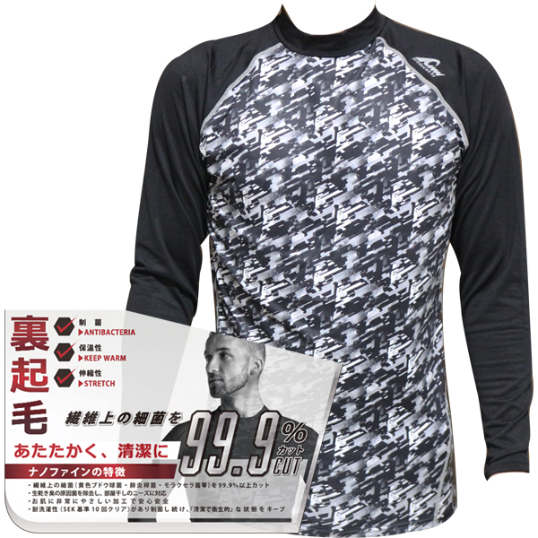 野球一筋オリジナル においブロック 野球 アンダーシャツ 長袖 丸首 ローネック ブラック 裏起毛 99.9%細菌カット ユニセックス