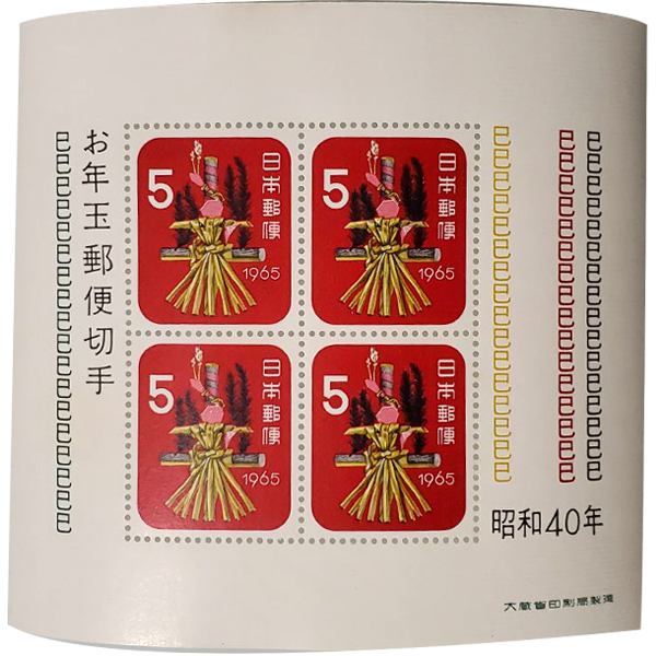 ■無くなり次第終了 大蔵省印刷局製造「お年玉郵便切手 1965年 昭和40年 巳年 5円×4枚 1シート」宝の山やコーナー