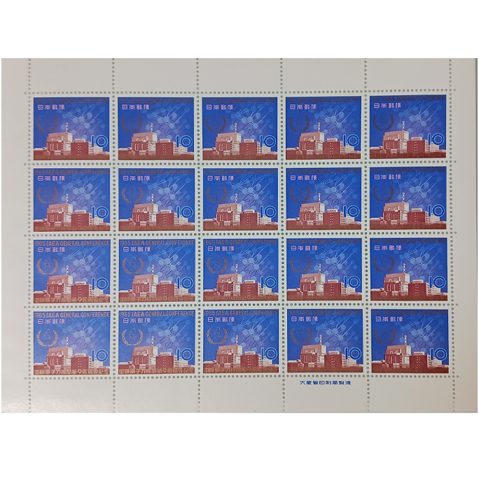 無くなり次第終了 大蔵省印刷局製造「記念切手 昭和40年 1965年 国際原子力機関第9回総会記念 東海村原子力発電所 10円×20枚 1シート」宝の山やコーナー