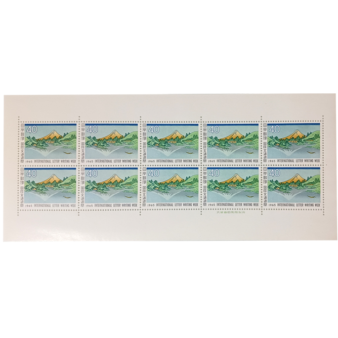 無くなり次第終了 大蔵省印刷局製造「記念切手 1965年 国際文通週間 葛飾北斎 富嶽三十六景・三坂水面 40円×10枚 1シート」宝の山やコーナー