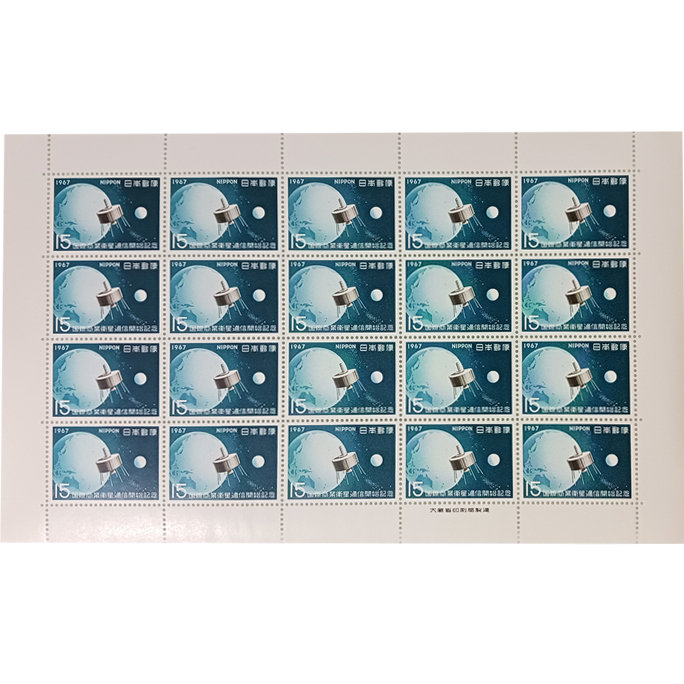 無くなり次第終了 大蔵省印刷局製造「記念切手 1967年 国際商業衛星通信開始記念 15円×20枚 1シート」宝の山やコーナー