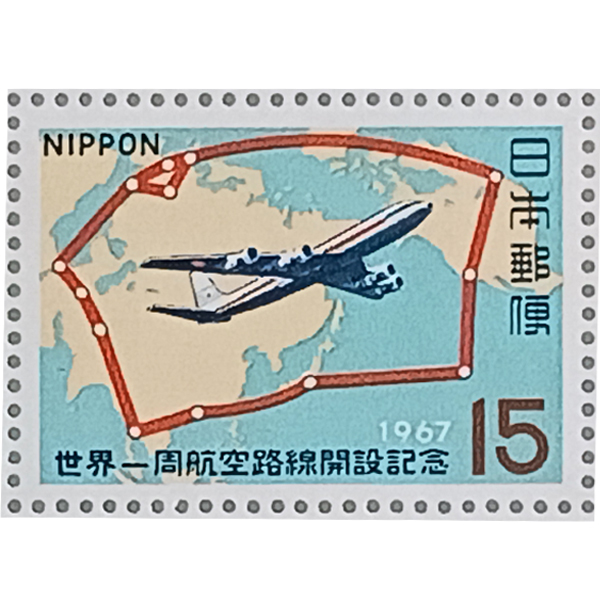 ■無くなり次第終了 記念切手 大蔵省印刷局製造 1967年 世界一周航空路線開設記念 15円×20 1シート 宝の山やコーナー
