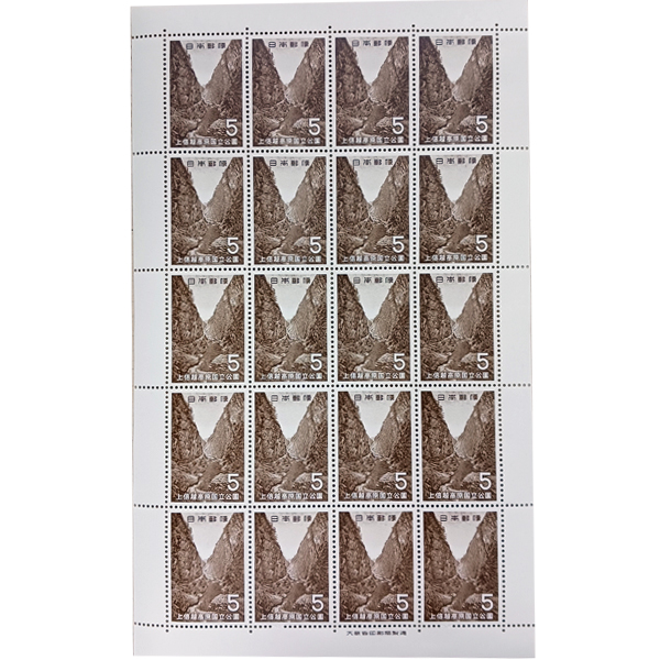 無くなり次第終了 大蔵省印刷局製造「記念切手シート 上信越高原国立公園 5円 20枚 1シート」宝の山やコーナー