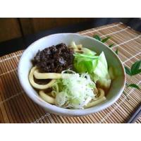 山梨県富士吉田市で昔から親しまれている、しっかりしたコシ、極太のうどん「吉田のうどん」半生2人前 麺幅:約5mm 吉田のうどんの作り方つき。お好みの具(ゆでキャベツ、甘辛く味付けした肉等)を添えてお召し上がり下さい。