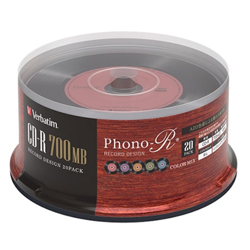 バーベイタム SR80FHX20SV6 CD-R 700MB レコード風レーベル 5色カラーミックス 20枚パック