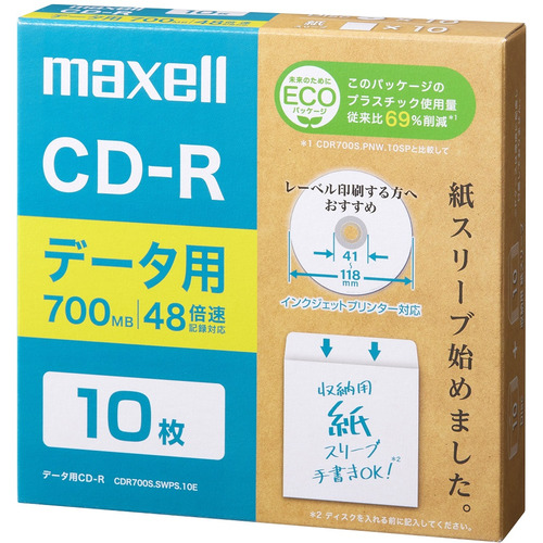 マクセル(Maxell) CDR700S.SWPS.10 データ用CDR エコパッケージ 1-16倍 700MB 10枚