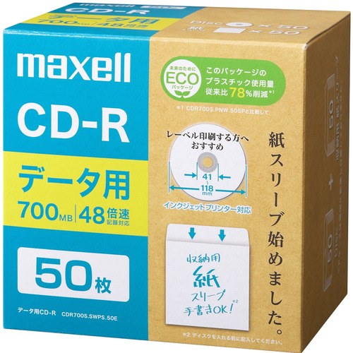 マクセル(Maxell) CDR700S.SWPS.10 データ用CDR エコパッケージ 1-16倍 700MB 50枚