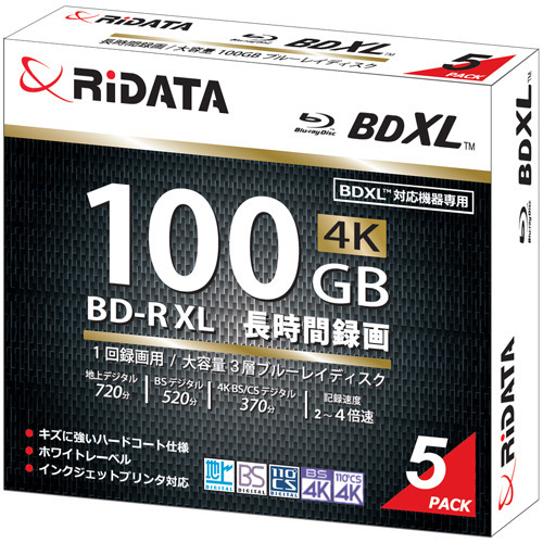 RiDATA BD-R520PW4X.5P SC A 録画用BD-R XL 2〜4倍速 100GB 5パック ホワイト