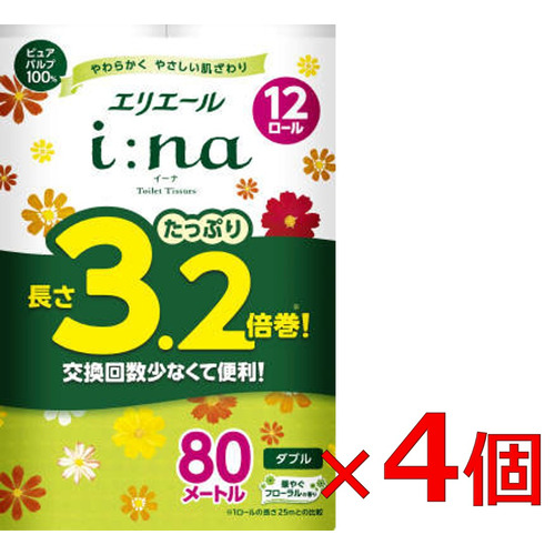 大王製紙 エリエール イーナ トイレットティシュー 3.2倍巻 ダブル 12R×4パック 【セット販売】