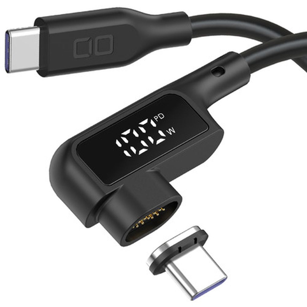 CIO ディスプレイ表示付き L字型マグネットシリコンケーブル 100W 1m CIO-SLLMG-SC-CC1-BK