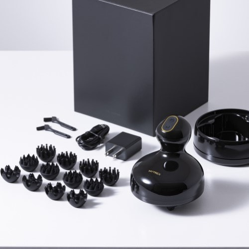 従来品のフェイス、スカルプ&ボディアタッチメントに加えて点で頭皮を刺激するニードルタイプのアタッチメントが付属