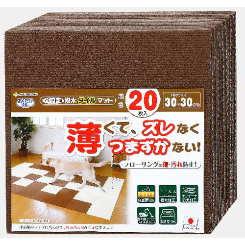 サンコー ペット用撥水タイルマット同色20枚入BR 同色20枚入 BR
