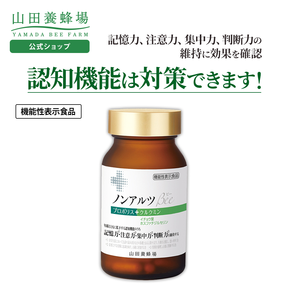 本品にはプロポリスエキス、クルクミン、イチョウ葉由来フラボノイド配糖体、イチョウ葉由来テルペンラクトン、大豆由来ホスファチジルセリンが含まれるので、年齢とともに低下する認知機能のうち、記憶力(日常生活において会話や読み書きなどの基礎となる言葉や文字、行動を記憶し、思い出す力)や注意力・集中力(必要とする情報に意識を向け、正確に対処する力)、判断力(情報を処理し正確に判断する力)を維持する機能があります。