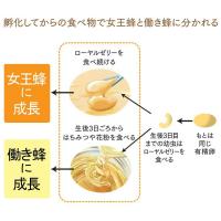 | ローヤルゼリーとは? 働き蜂が花から集めた「花粉」を体内で消化・分解・生成し、下咽頭腺と大あご腺から分泌したものです。 生成される生のローヤルゼリーは、舌を刺すような酸味のある乳白色のクリーム状の物質で、生成の過程や成分から、はちみつとは全く異質のものです。 |