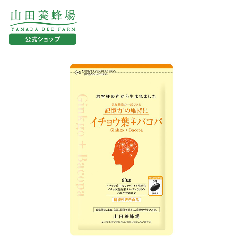 イチョウ葉+バコパは、生涯現役で健康的に過ごすために、認知機能の一部である記憶力※1の維持をサポートするイチョウ葉※2とバコパ※3を配合した商品です。