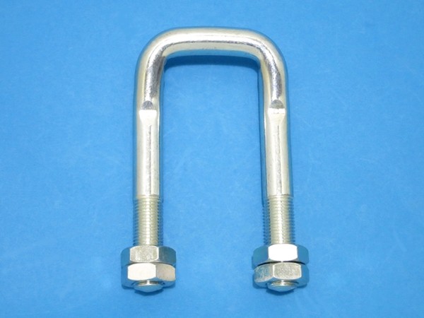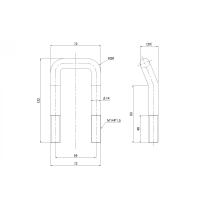 トラックの床枠に2ヶ所穴を開けて設置するフックです。フックの上部が、ベルトを掛け易いように曲がっています。