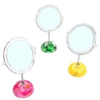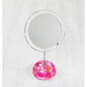 アクリル製スタンドミラー/卓上鏡 〔丸型 ピンクオーキッド〕 造花