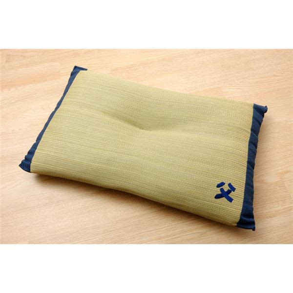 国産のイ草を使用したイ草枕です。より頭にフィットするよう、枕の中心部分に「くぼみ」をつくりました。快眠い草の効能として1.綿の約2.5倍の吸湿力 2.蒸れにくい。汗による湿気を吸うことにより温度を下げ快適な就寝を促します。 3.汗のにおいを軽減。汗のにおいの元となる化学物質を90%以上抑えます。などがあります。国産(九州産)のしなやかなイ草を使用していますので、柔らかく、すべすべしたとした肌触りです。中材には低反発ウレタンチップを使用しています。柔らかすぎずヘタリにくく、型崩れしにくいのが特長です。い草の表面に天然青森ヒバ加工を施しています(抗菌・防臭効果)。青森県のヒバの木から抽出した「ヒバ油」をメーカー独自の技術で材料や商品に加工しました。「ヒバ油」には、ヒノキチオールという天然物質としては極めて抗菌性の高い成分が含まれ、医療や食品など多分野で利用研究が進められています。