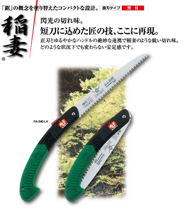 山林での枝打ち作業、植木や果樹の剪定作業、仮枠作りや卓上での木工作業など鋸は様々な状況で使われますが、直刃鋸はそのまっすぐな刃並びで、どのような状況下でも扱いやすく、安定した切れ味を発揮し、精度の求められる作業に最適です。