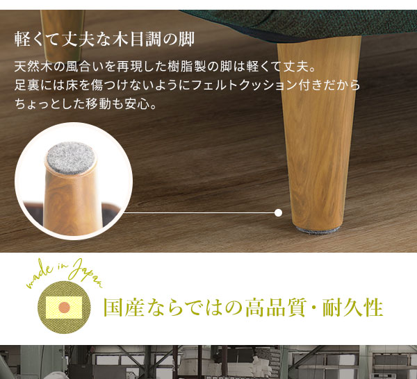 天然木の風合いを再現した樹脂製の脚は軽くて丈夫。