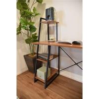 デスク 机 パソコンデスク 学習机 幅102cm 棚 ラック スチール アイアン 木目 ブラック/ブラウン BK/BR 組立品