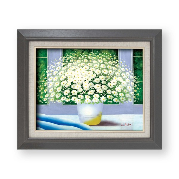 ■〔 花の油絵 〕 黒いフレーム 白い花 アレックス 油絵額 F6号サイズ 紘黒額 油彩 油彩画 絵画額[当ページ]