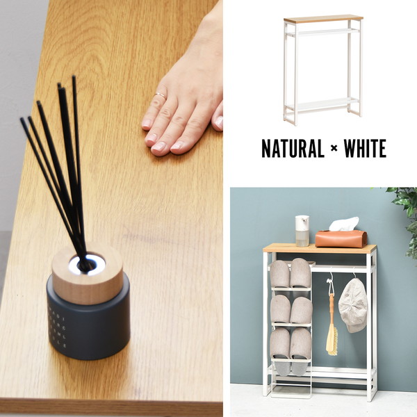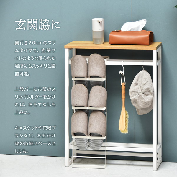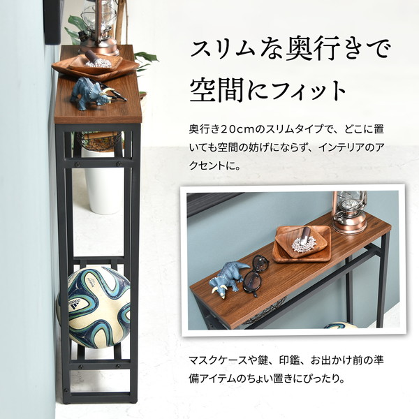 エントランスや廊下、リビングで大活躍。廊下やリビングでの観葉植物や鍵などの置き場としても活躍。ちょっとした置き場所が欲しい時に便利なコンソールテーブルです。上下に2本のバーがあるので小物や傘の収納、ボールやスリッパの収納に。