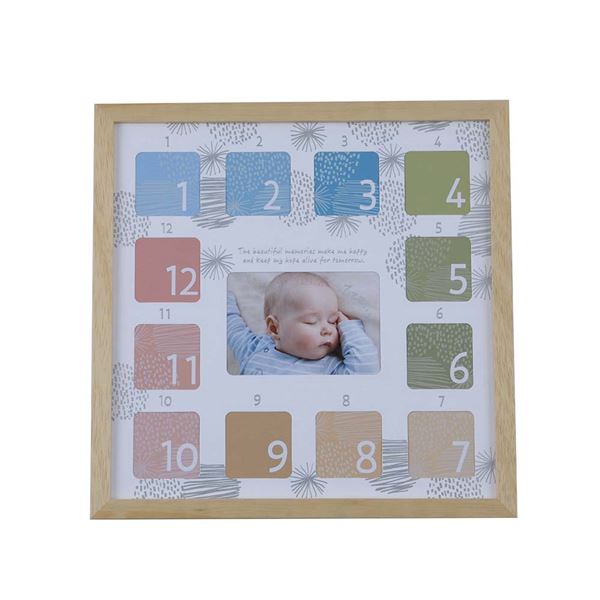 ●12ヶ月間の子供の笑顔を飾れる。日々変わっていく成長を1ヶ月ごとに記録。1年の成長記録、ペットやウェディングの思い出の記録にも…[ランポア] 木製フォトフレーム。※ランポア (Lampoa [フィンランド語])=ぬくもり。<スクエアサイズ/1面・13窓タイプ>