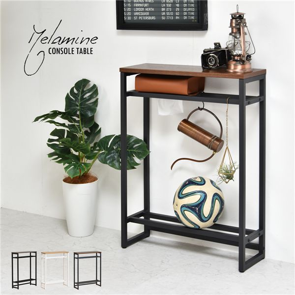 廊下やリビングでの観葉植物や鍵などの置き場としても活躍。ちょっとした置き場所が欲しい時に便利なコンソールテーブルです。上下に2本のバーがあるので小物や傘の収納、ボールやスリッパの収納に。