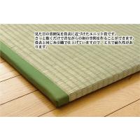 届いたユニット畳を床に置くだけで和のスペースが出来上がります。見た目や、い草生地の織りなど一般の畳に近い雰囲気に仕上げました。なつかしい昔ながらの畳がお好みの方におすすめの商品です。こちらの商品の表生地は畳表と同じ織り方の糸引織りで仕上げました。双目織と比べて、い草の打ち込み本数が多いため、しっかりとしていて丈夫です。表面が滑らかなので、ホコリなどがたまりにくいのが特徴です。い草には空気の自然浄化作用、湿度の調節作用などがあります。また汚れにくく、使用するうちに黄金色に変化し、味が出ます。中材に木製ボードを使用した重量感のある本格タイプです。裏の不織布にはすべり止め加工を施しています。また木製ボードとイ草生地の間にウレタンを使用していますので、ほのかなクッション性があります。