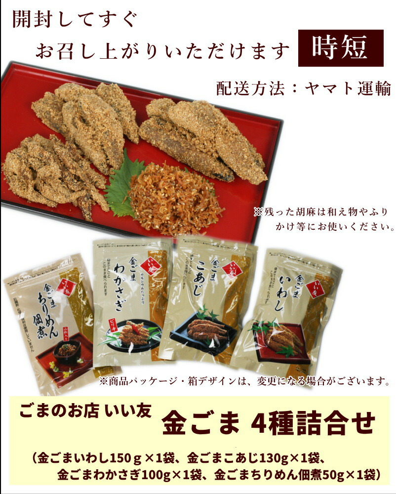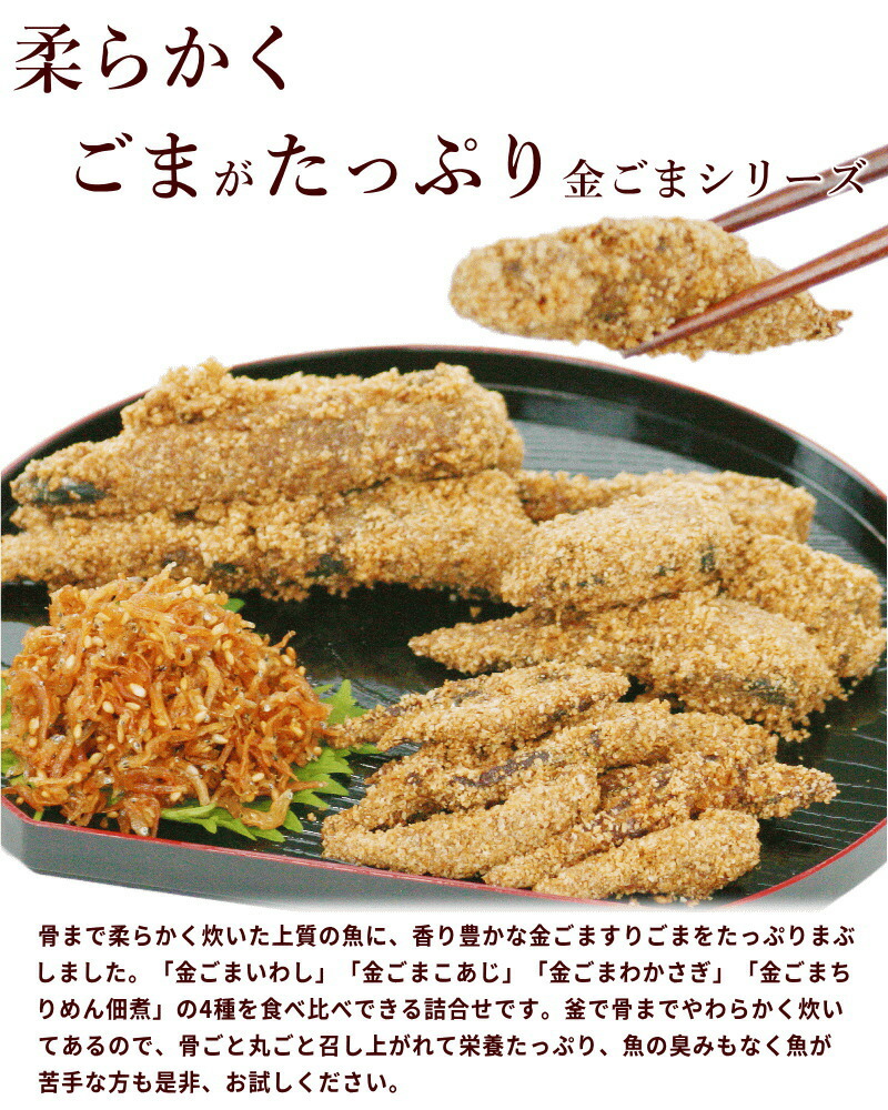 魚 惣菜 金ごま ごま専門店 いい友 金ごま4種詰合せ 金ごまいわし150g 金ごまこあじ130g 金ごまわかさぎ100g 金ごまちりめん佃煮50g