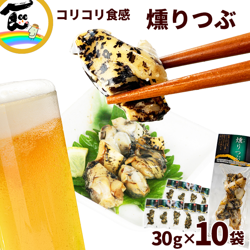 宮城県産 燻りつぶ 30g×10袋 計300g おつまみ 燻製 つぶ 貝 日高見の国 末永海産 代引不可 送料込