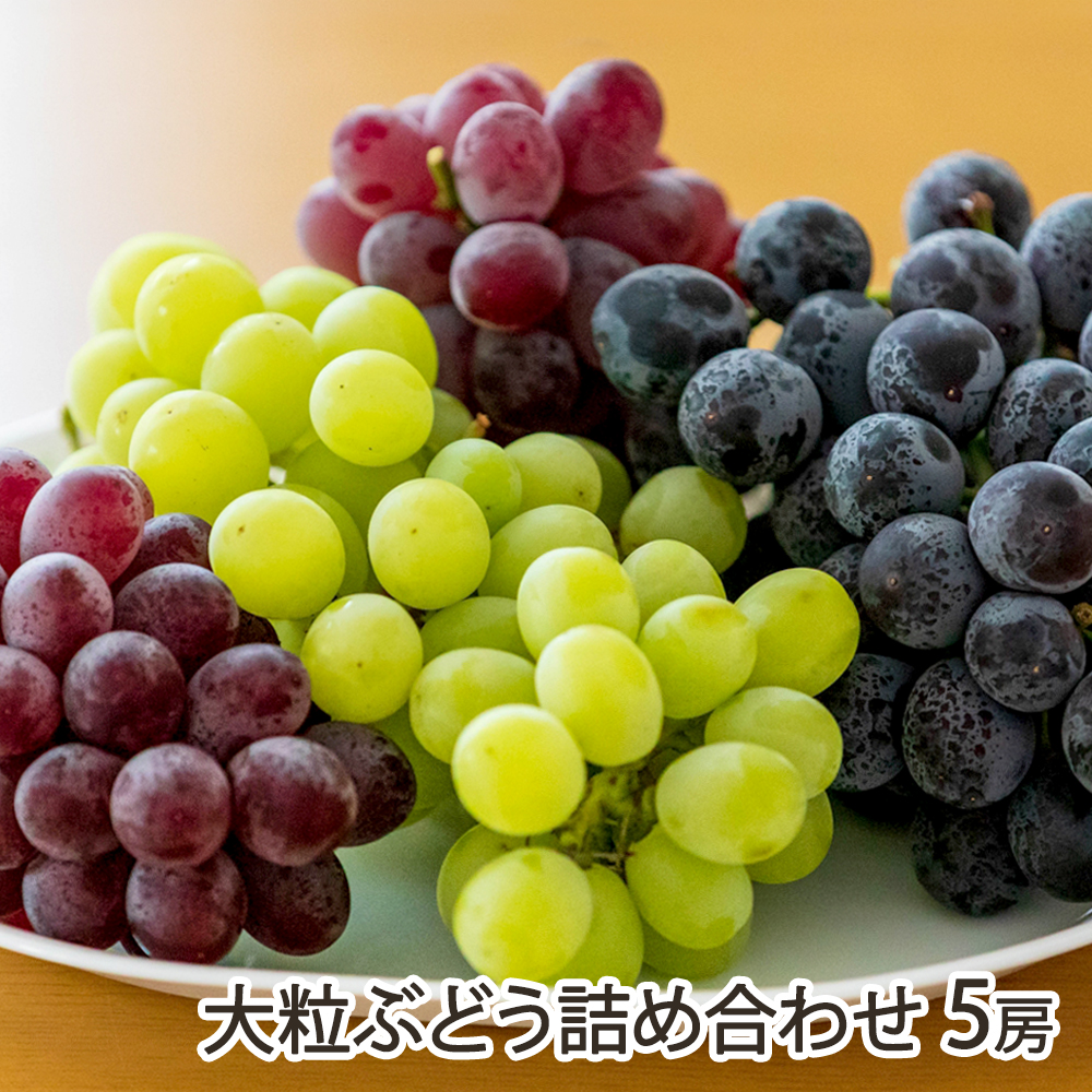 | 内容 | 大粒ぶどう詰合せ 5房 ※シャインマスカット・赤ぶどう・黒ぶどうは、それぞれ1房が必ず入ります ※配達日のご指定はお受けできません |