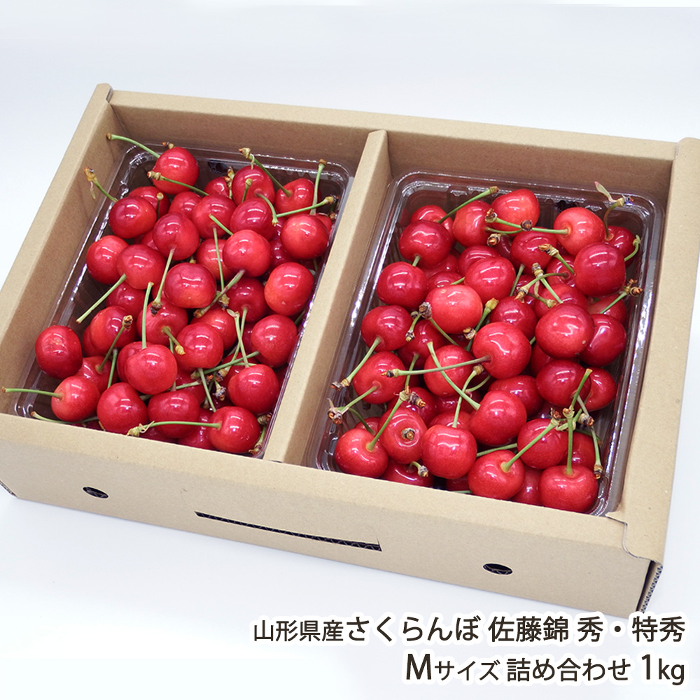 | 内容 | 山形県産さくらんぼ 佐藤錦 秀・特秀 Mサイズ詰め合わせ 1kg 商品内容:500g×2パック |