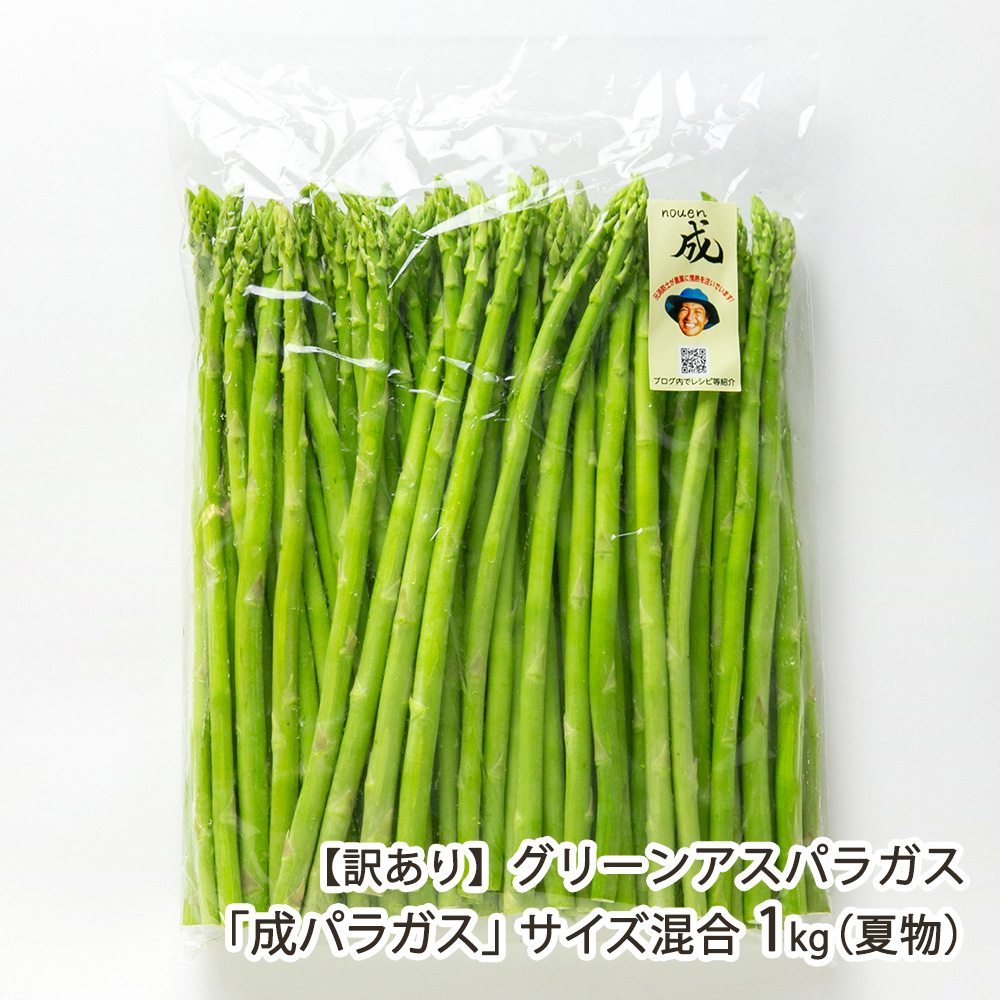 | 内容 | 【訳あり】グリーンアスパラガス「成パラガス」サイズ混合 1kg(夏物) |