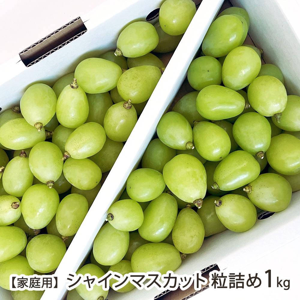 | 内容 | 【家庭用】シャインマスカット 粒詰め 1kg ※房から外した粒の状態でお届けします |