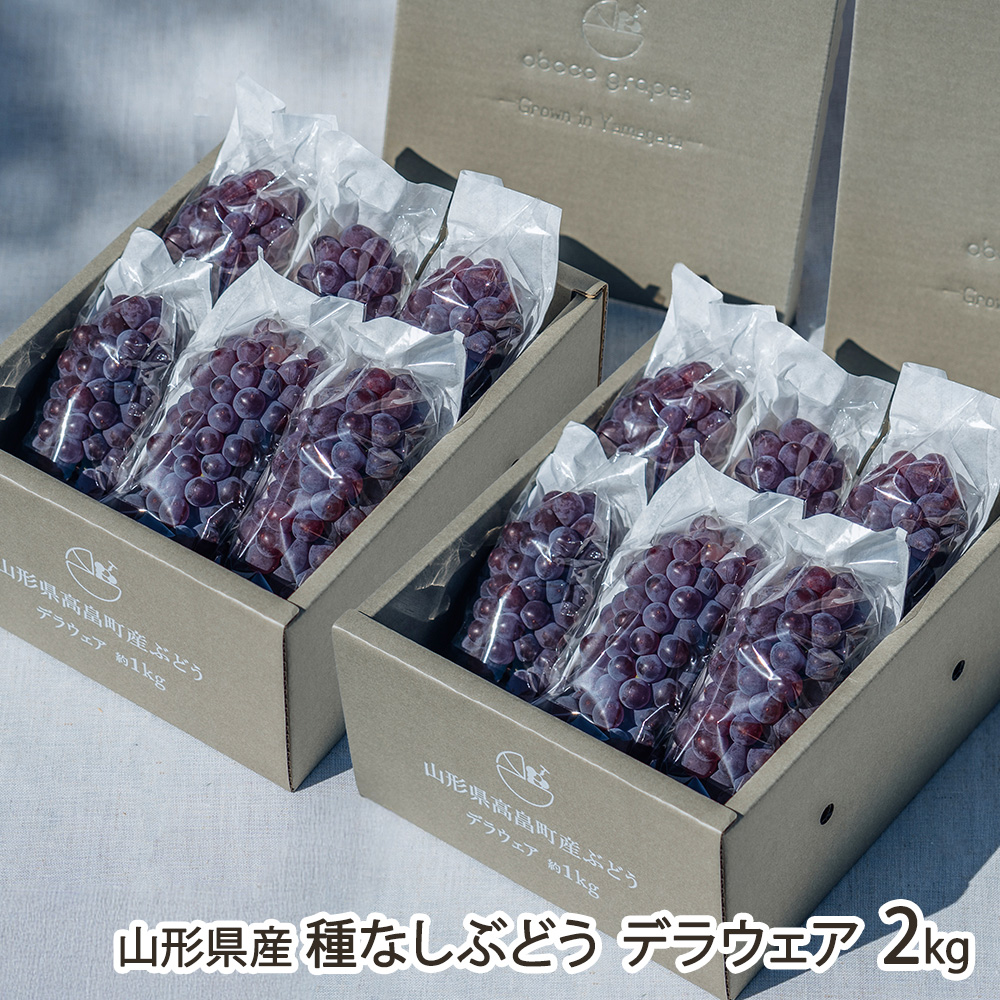 | 内容 | 山形県産 種なしぶどう デラウェア 2kg 商品内容:1kg×2箱 |