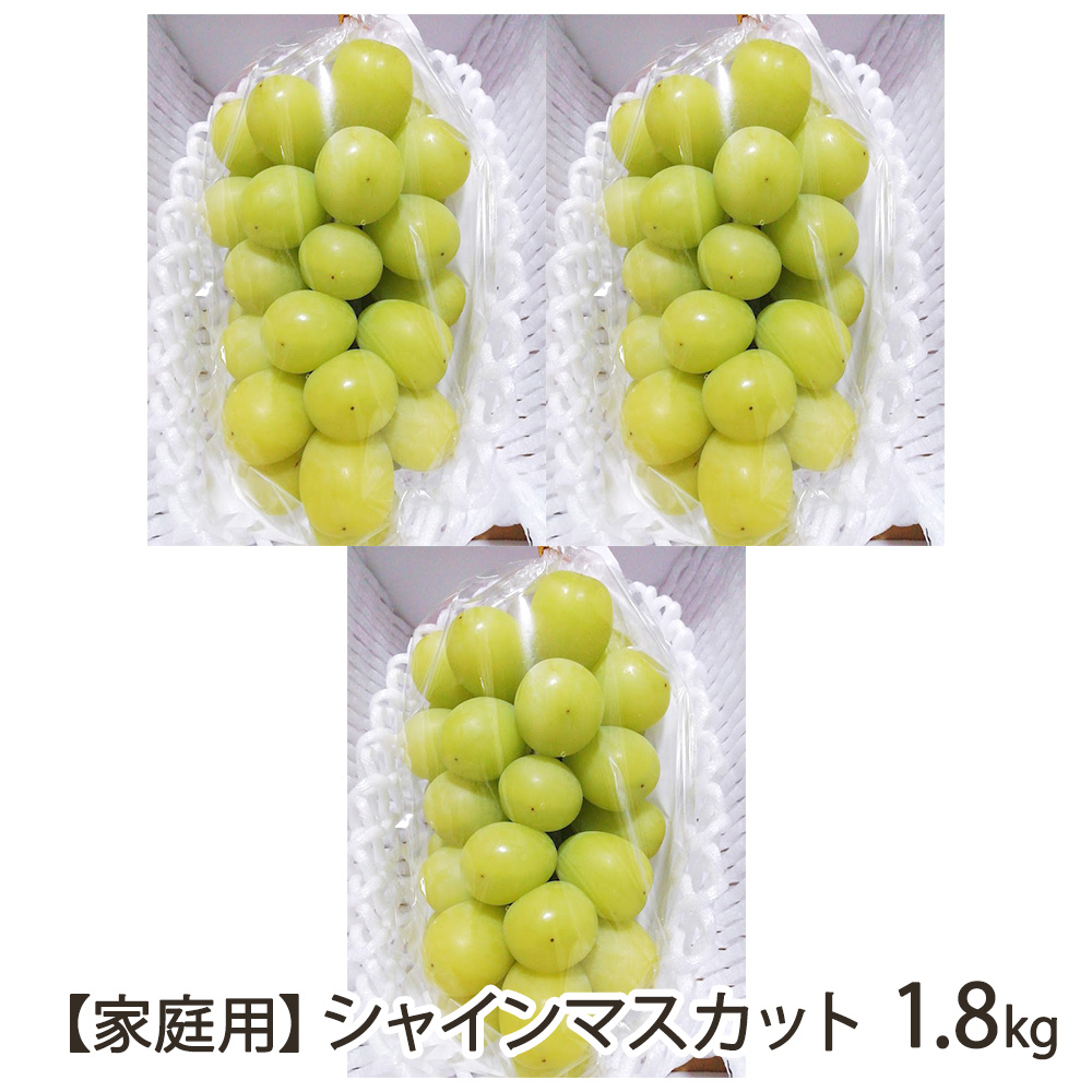 | 内容 | 【家庭用】シャインマスカット 1.8kg 房数の目安:3〜4房 |