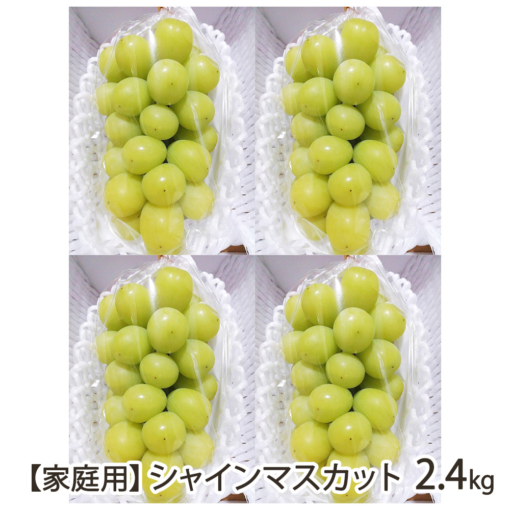 | 内容 | 【家庭用】シャインマスカット 2.4kg 房数の目安:4〜5房 |