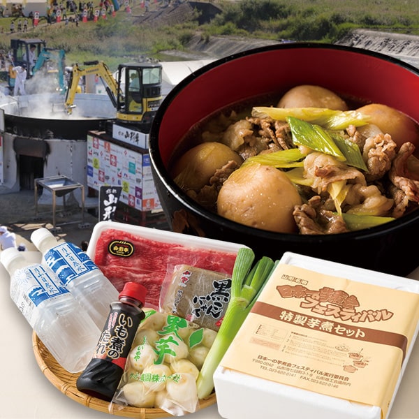 このために特注で作られた直径約6.5mの大鍋の中に、里芋3トン、牛肉1.2トン、こんにゃく3,500枚、長ネギ3,500本を入れ、調味料として醤油700リットル、日本酒50升、砂糖200kg、水6トンを、6トンの薪(ナラ材)で豪快に煮炊きします。