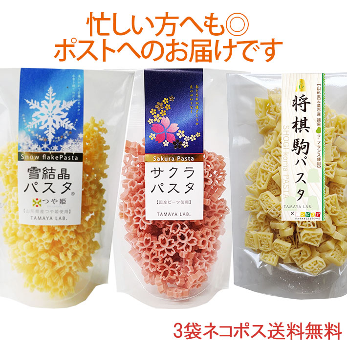 サクラパスタ 将棋駒パスタ 雪結晶(つや姫)パスタ 3袋セット ネコポス 送料無料 玉谷製麺 デコ弁 お料理の色どり デコレーションパスタ トッピング かわいい