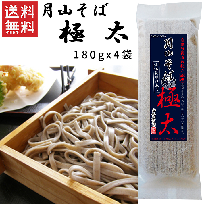 乾麺 山形 月山そば 極太 180gx4袋 玉谷製麺所 ネコポス送料無料 山形 乾麺 塩分ゼロ 無塩