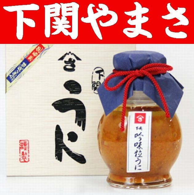 | 保存 | 直射日光を避け湿度の少ないところで保存してください| 製造者 | 株式会社 やまさ | 商品説明 | 旬のうにの中から厳選吟味された芳醇なバフンウニをアルコール漬け発祥の地、下関の伝統の技で作り上げた秀作雲丹です。だるま瓶に入れ木箱に入ったこの商品は贈答用にも好評いただいております。 | 同梱不可 | こちらの商品は同梱出来ません。やまさの商品とは同梱できます。 | やまさの商品はこちらです |