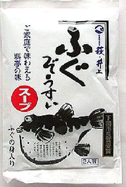 | 内容量 | 341g| 原材料 | ふぐ、しょう油、うきみ(キャベツ、にんじん、しいたけ、わけぎ)、食酢、食塩、清酒、カツオエキス、砂糖、米醗酵調味料、ソルビット、調味料(アミノ酸等)、アルコール、カラメル色素、香料(原材料の一部に小麦・大豆・オレンジ由来原料を含む) | 賞味期限 | 常温180日 | 保存 | 冷暗所にて保管,開封後はお早めにご利用下さい | 製造者 | 井上商店 | 商品説明 | ふぐの骨とアラをじっくり煮込んで 旨味を抽出した雑炊用スープです。ふぐの身も入っていますので、 本格的な本場の味がご家庭でお手軽に召し上がれます。また、雑炊だけでなく、鍋物のだしや湯豆腐、みそ汁、 お吸い物など幅広くご使用いただけます。 | 同梱可 | こちらの商品は下記のメーカーと同梱できます。 | 同梱可能商品はこちらです 産地直送品および、冷凍商品との同梱包はできません。その場合送料を二個口頂くようになりますのでご注意ください。 |