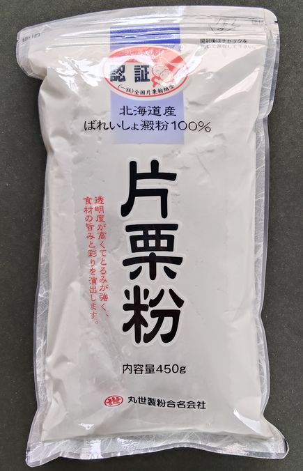 | 内容量 | 450g| 原材料 | ばれいしょ澱粉 | 賞味期限 | 常温2年 | 保存 | 冷暗所にて保管,開封後はお早めにご利用下さい | 製造者 | 丸世製粉 | 商品説明 | 北海道産ばれいしょ澱粉をそのままリパックしました。水溶き時には透明感ととろみの強さを発揮し、食材の旨みと彩りを演出します。全国片栗粉組合連合会の認証マークを取得しています。保存に便利なチャック付パッケージ仕様です。 | 同梱可 | こちらの商品は下記のメーカーと同梱できます。 | 同梱可能商品はこちらです 産地直送品および、冷凍商品との同梱包はできません。その場合送料を二個口頂くようになりますのでご注意ください。 |