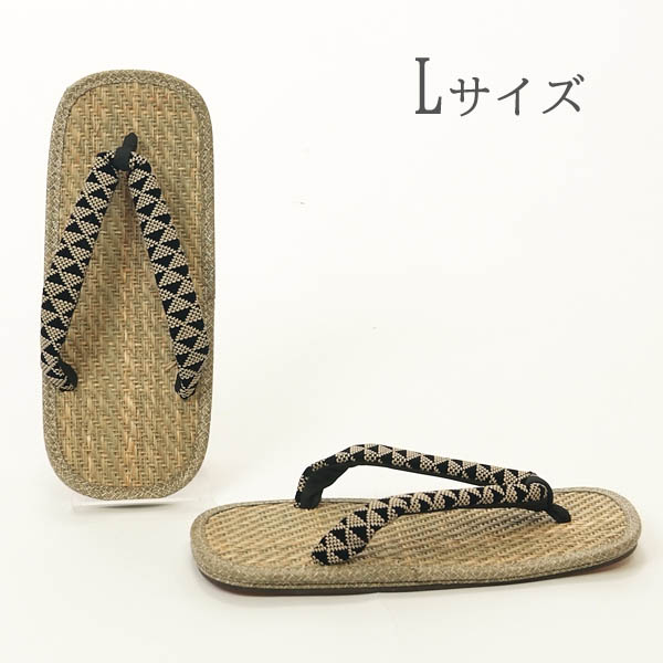 | 牛皮を使用した本革底の男性用の雪駄です。 台の表面は、パナマを編んだ、さらっとした表面になっています。 台本体は三枚芯になっていて、雪駄本来の仕様になっています。 底裏は本革を使用し、かかと部分も本革になっています。 本革製品は、歩きやすく丈夫です。 鼻緒は、印伝調のおしゃれなデザインです。 鼻緒裏はソフトな生地を使用していますので、足にあたる部分が痛くなりにくいです。 夏着物や浴衣、甚平、作務衣、デニム着物など幅広く履いて頂けます。 |