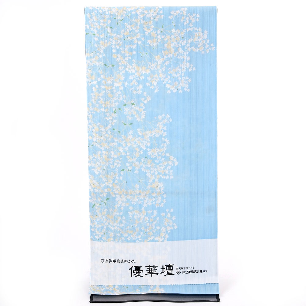 | 優華壇ブランドの浴衣反物です。 ワイドサイズで、幅が広くなっていますので、、裄など広めにお仕立てされたい方にもご着用できます。 楚々としたかすみ草の花束を図案化。繊細で華やかな印象です。 高級生地「陽炎」を使用。 シャリ感のある生地で、細かい紗の様な縦縞が地紋となっている、清涼感と高級感を持ち合わせた生地です。 太番手と細番手の二種類の経糸を用い、生地全体に自然な濃淡をつけることで揺らめきを表現した生地。 二種類の経糸でつくるストライプ柄の凹凸が肌に触れる面積を減らし、清涼感を与えてくれます。 そして、横糸に通常よりも撚りを強くした強撚糸を用いることで、接触の効果をプラスしています。 染めは、伝統工芸品にもよく使う手捺染で、職人さんが1版ずつ手作業で染めています。 |