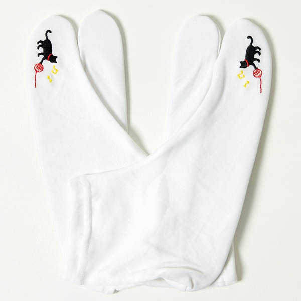 | ストレッチの足袋になります。 猫の刺しゅうが、左右の指の外側に施されています。 鞠で遊んでいる黒猫が可愛いデザインです。 ストレッチ素材で伸縮性がありますので、靴下の様に履きやすいです。 こはぜのない口ゴムになっていますので楽に履いて頂けます。 少し薄手の生地になります。 足袋カバーとしてもご使用使用頂けます。 カジュアルなお着物に合わせてご使用頂けます。 |