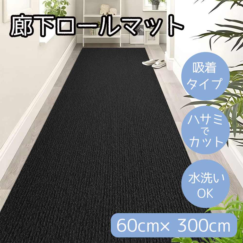 東和 廊下マット 60cm×300cm ブラック [カーペット 敷物 ロールマット 吸着 ハサミでカット 水洗い 冷え 床 ペット] HM-HALLWAY60300-BLACK 爆買